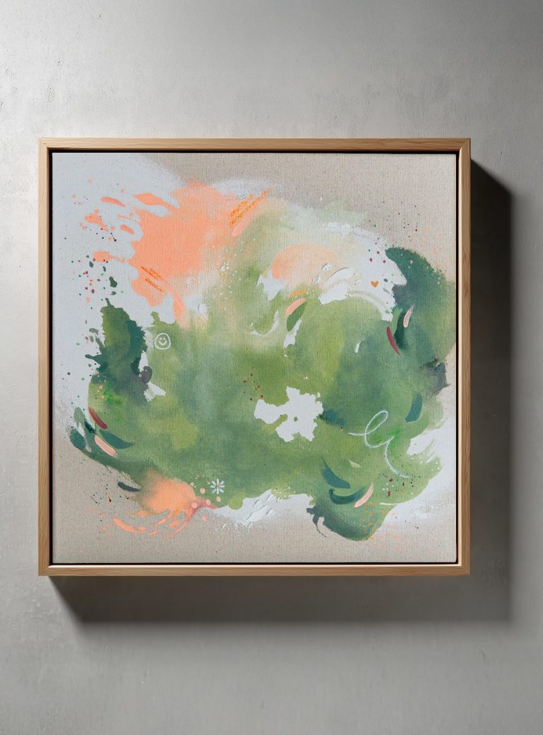 40 x 40 cm | Acryl auf Leinwand | Mixed Media | 1fach grundiert | Gerahmt (Eiche) | Versiegelt | 2025