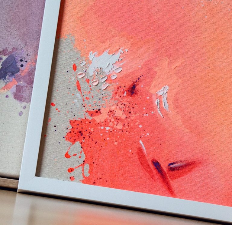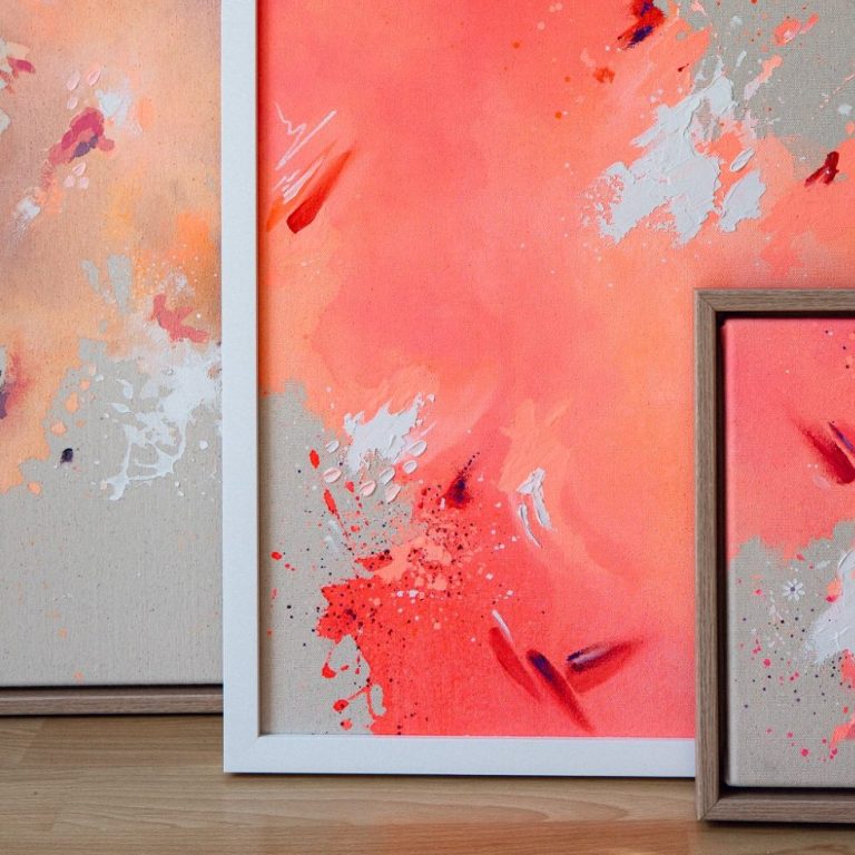 „Neon Red“ spielt mit feurigen Rot-Orange-Tönen, neonartigen Reflexen und rauen Strukturen. Das Werk wirkt wie ein pulsierender Moment zwischen Hitze und Bewegung, zwischen Emotion und Explosion.
