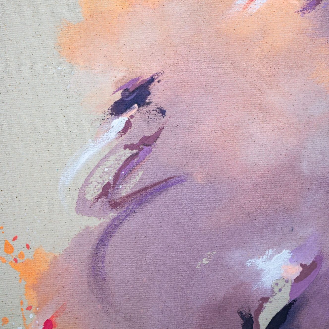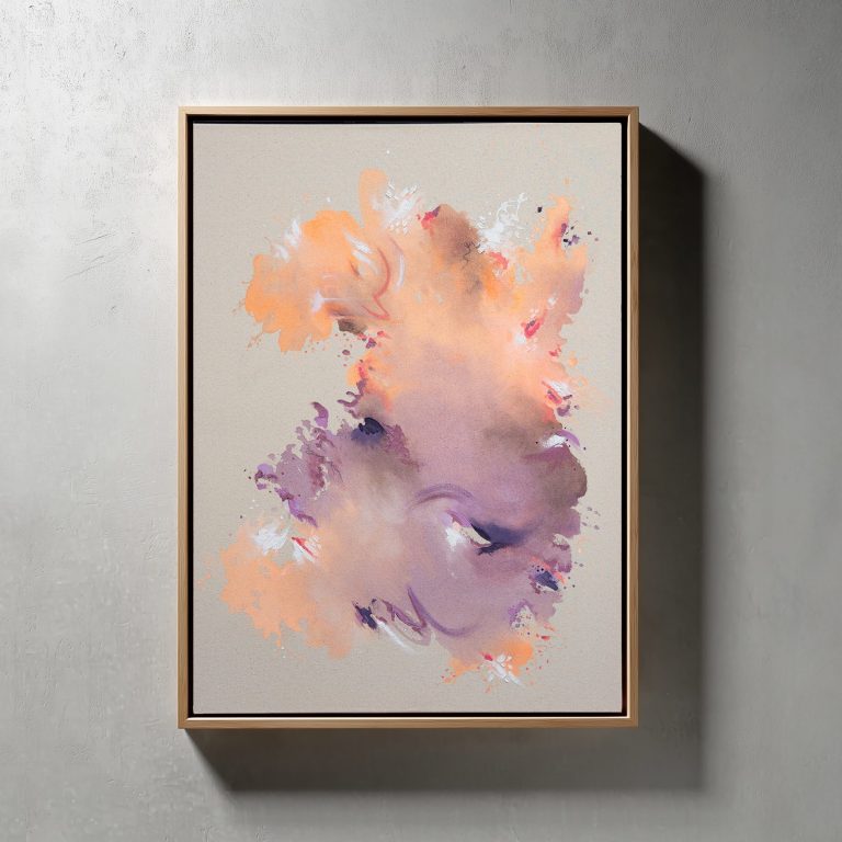 Leise Töne, ließende Formen und ein Hauch von Energie in Lila und Apricot. Ein Werk, das Raum für Interpretation lässt und gleichzeitig Ruhe und Ausdruck vereint.